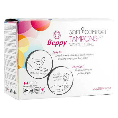 Beppy Soft Comfort Dry are comfortable and pleasant to wear tampons with no string to provide more freedom during swimming, a visit to the sauna, performing sports or a night out. Body-safe alternative tampon lasts up to 8 hours.