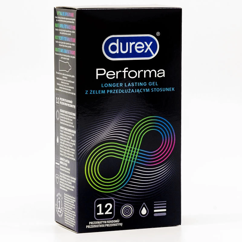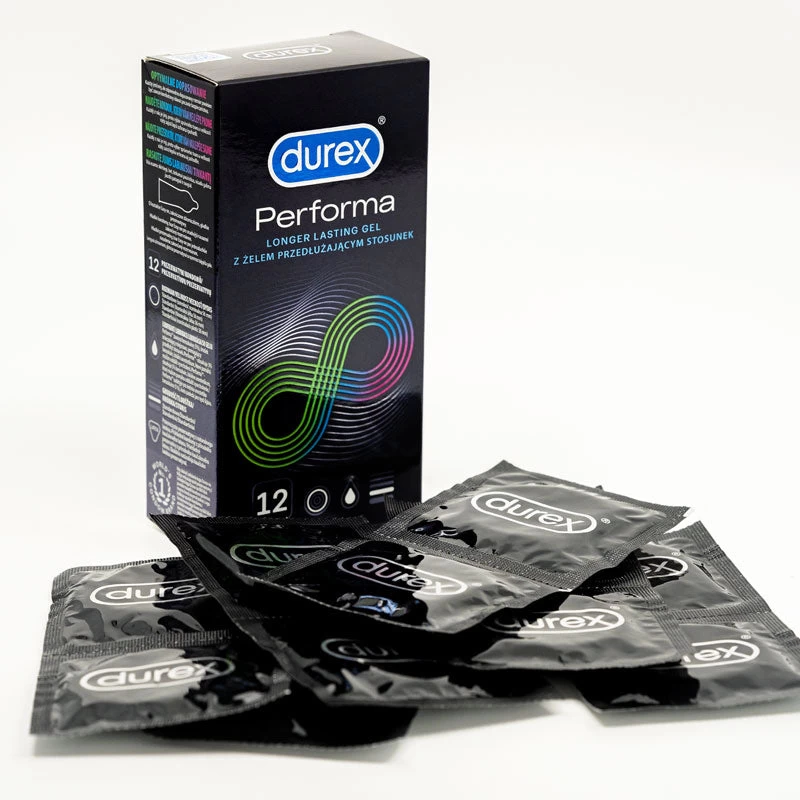 Durex Performa is a transparent, Easy-On shaped, teat-ended, natural rubber latex condom for enhanced performance.