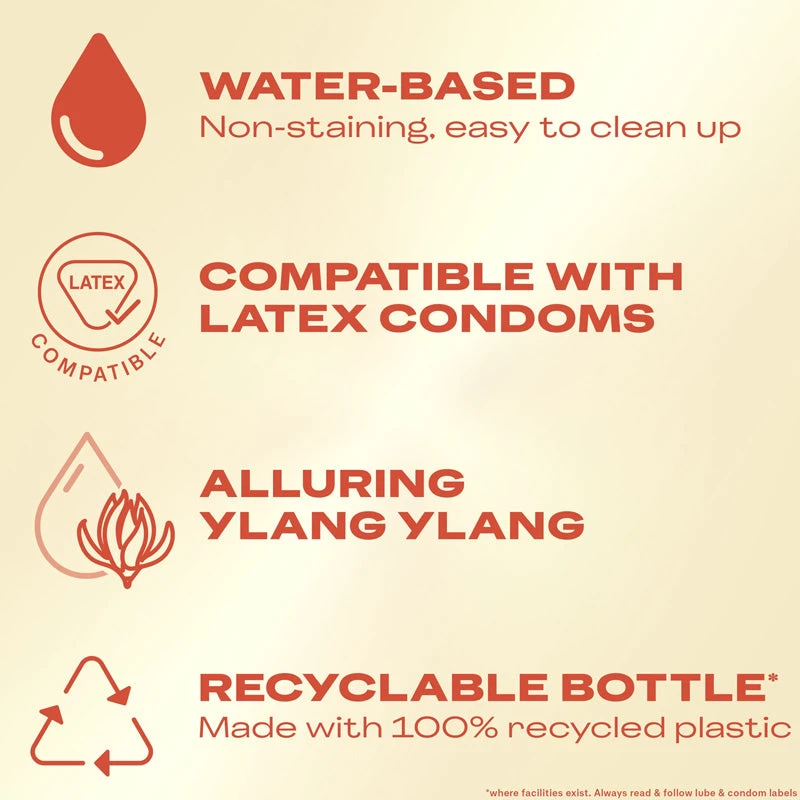 Water-soluble formula is safe to use with toys or condoms. Super smooth, silky and condom-safe.