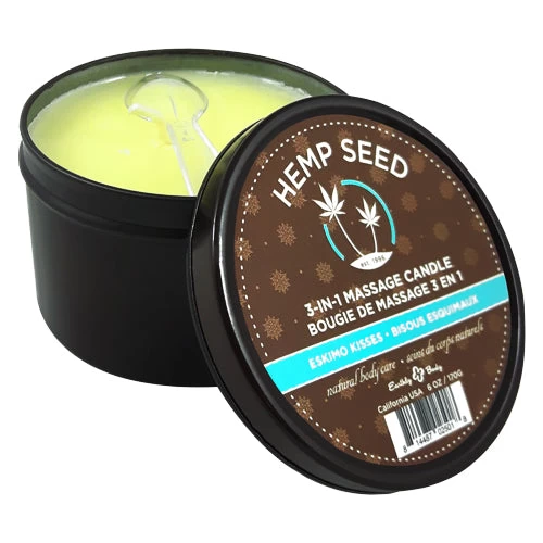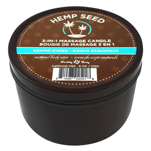 Earthly Body 3-in-1 Massage Candle Eskimo Kisses melts down into a massage oil with a unique blend of six natural oils, providing intensive moisture and nutrition to skin, making it feel soft and flexible all day long.