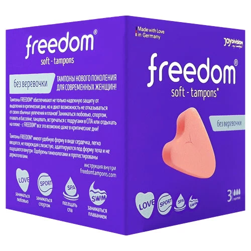 JoyDivision Freedom Normal Soft-Tampons are innovative, heart-shaped sponges that provide women greater confidence of movement and the benefit of reliable, invisible protection during their period.