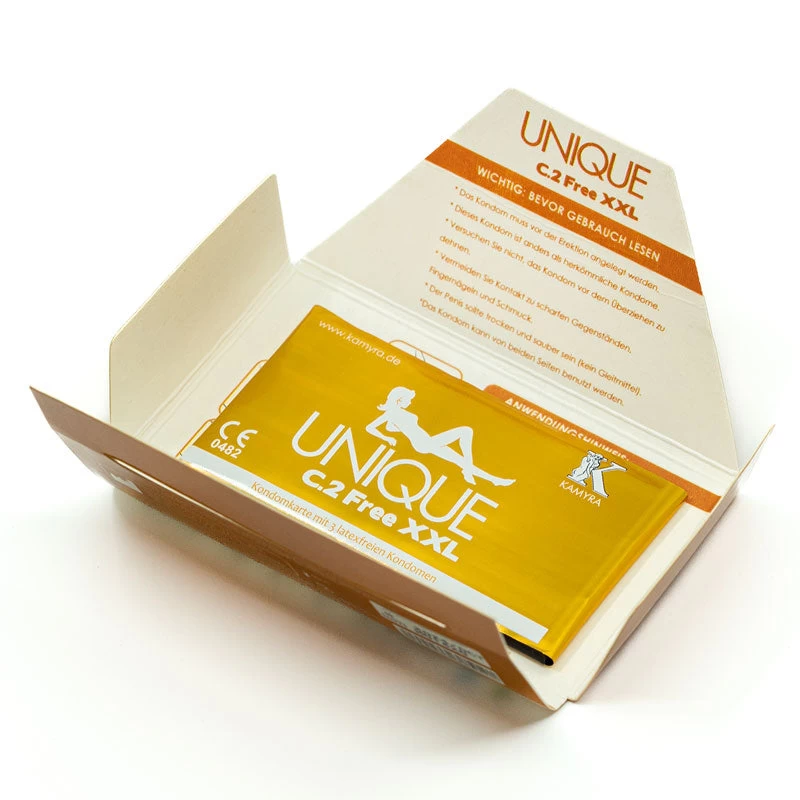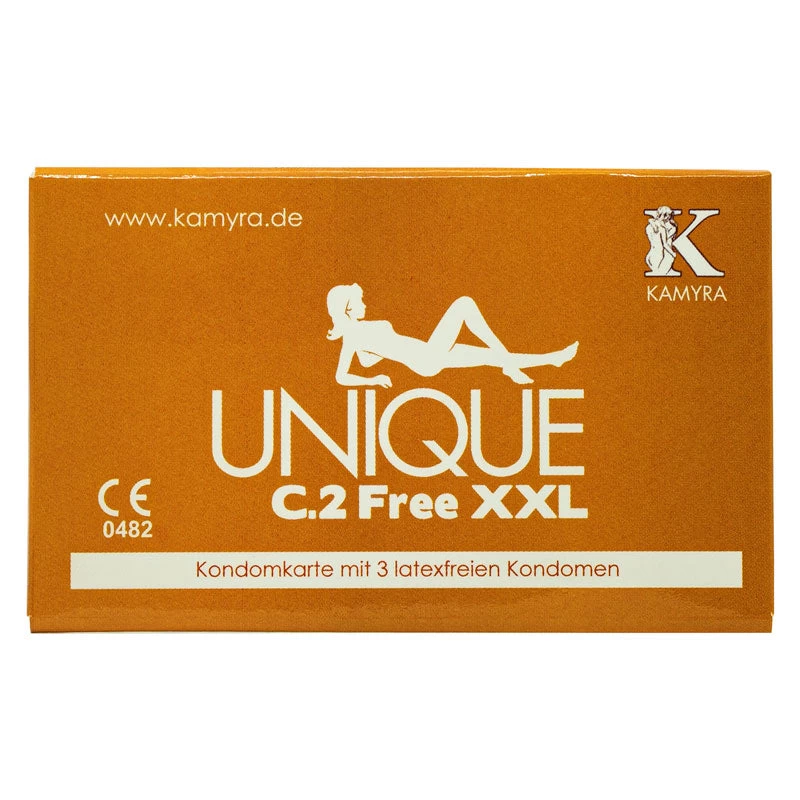 Kamyra Unique C.2 Free XXL exciting and unique condoms have a flange at the bottom instead of a ring, thus sticking to the skin around the base of the penis.