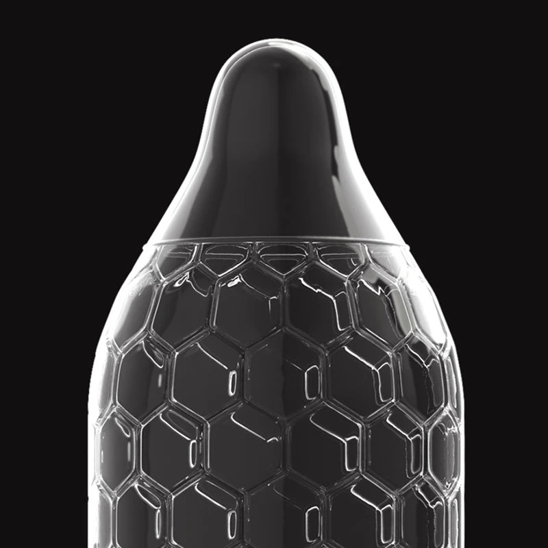 Transparent condom offers revolutionary structure on the inside and fine luxury smooth design on the outside. Due to the unique hexagonal web texture in the rubber, you are awarded not only with extreme stimulation but also with reliable protection.