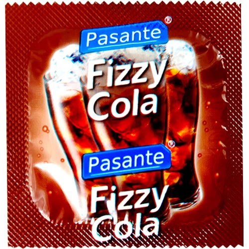 Pasante Fizzy Cola is a brown color, teat-ended, straight sided, natural rubber latex condom with a non-spermicidal lubricant.