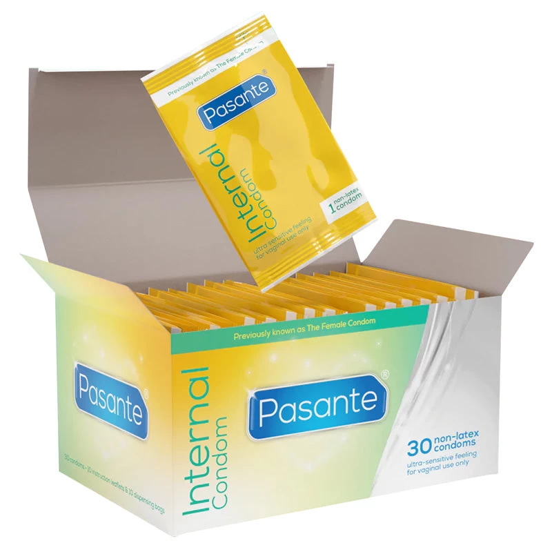 Pasante Internal female condom is a transparent, non-latex, non-spermicidal lubricated condom designed for women as a contraceptive.