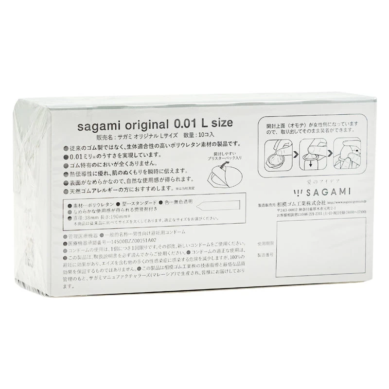 Sagami Original 0.01 L-size condom is larger and wider than regular Sagami condoms. With a thinness of 0.01 mm, condoms provide a higher sensitivity experience.