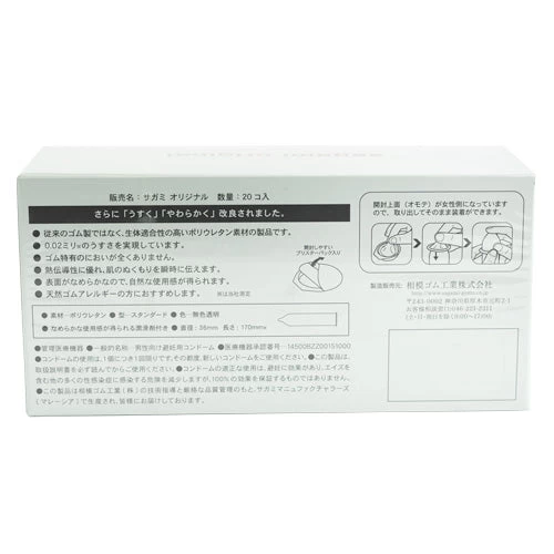 Made from polyurethane, Sagami Original 0.02 has no rubber-specific smell and perfectly suits for people with latex-allergy.