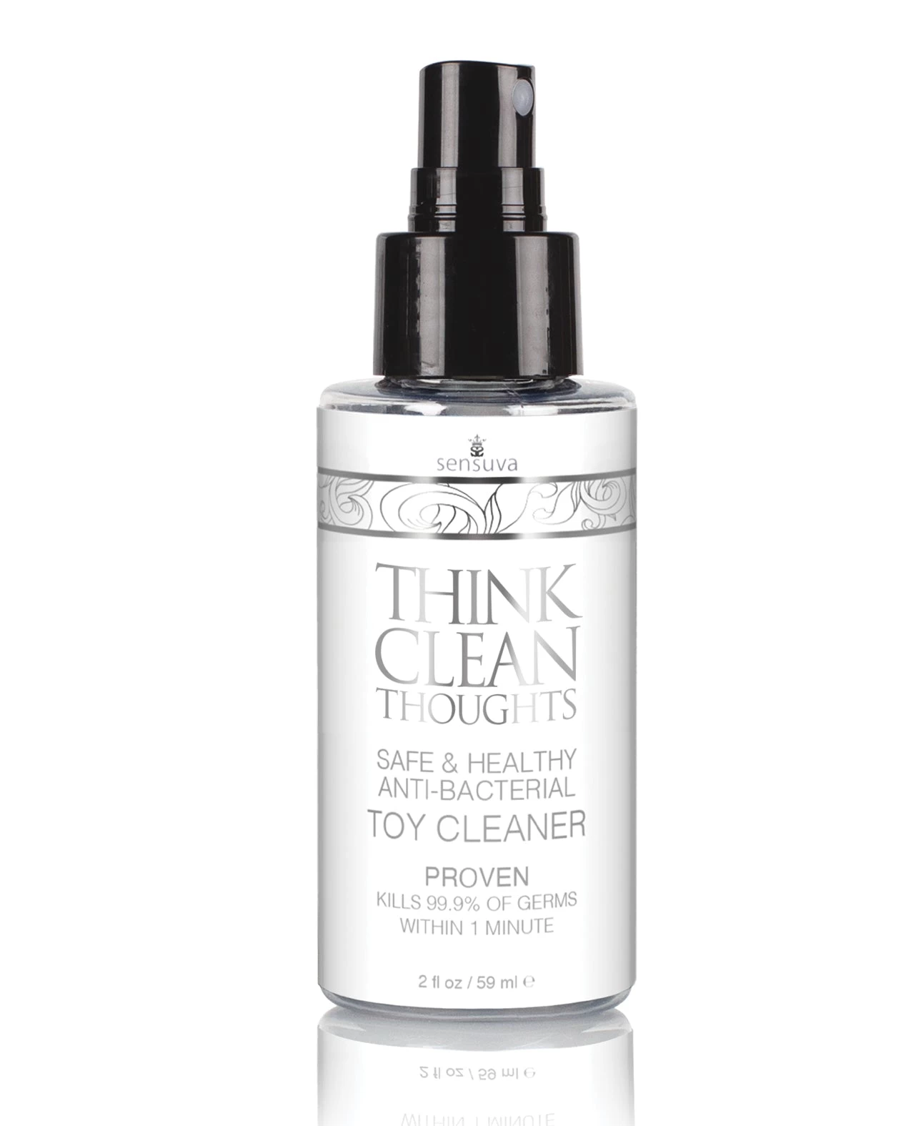 Ensure a hygienic experience with Think Clean Thoughts, an anti-bacterial cleaning spray that effectively eliminates 99.9% of bacteria without causing irritation.