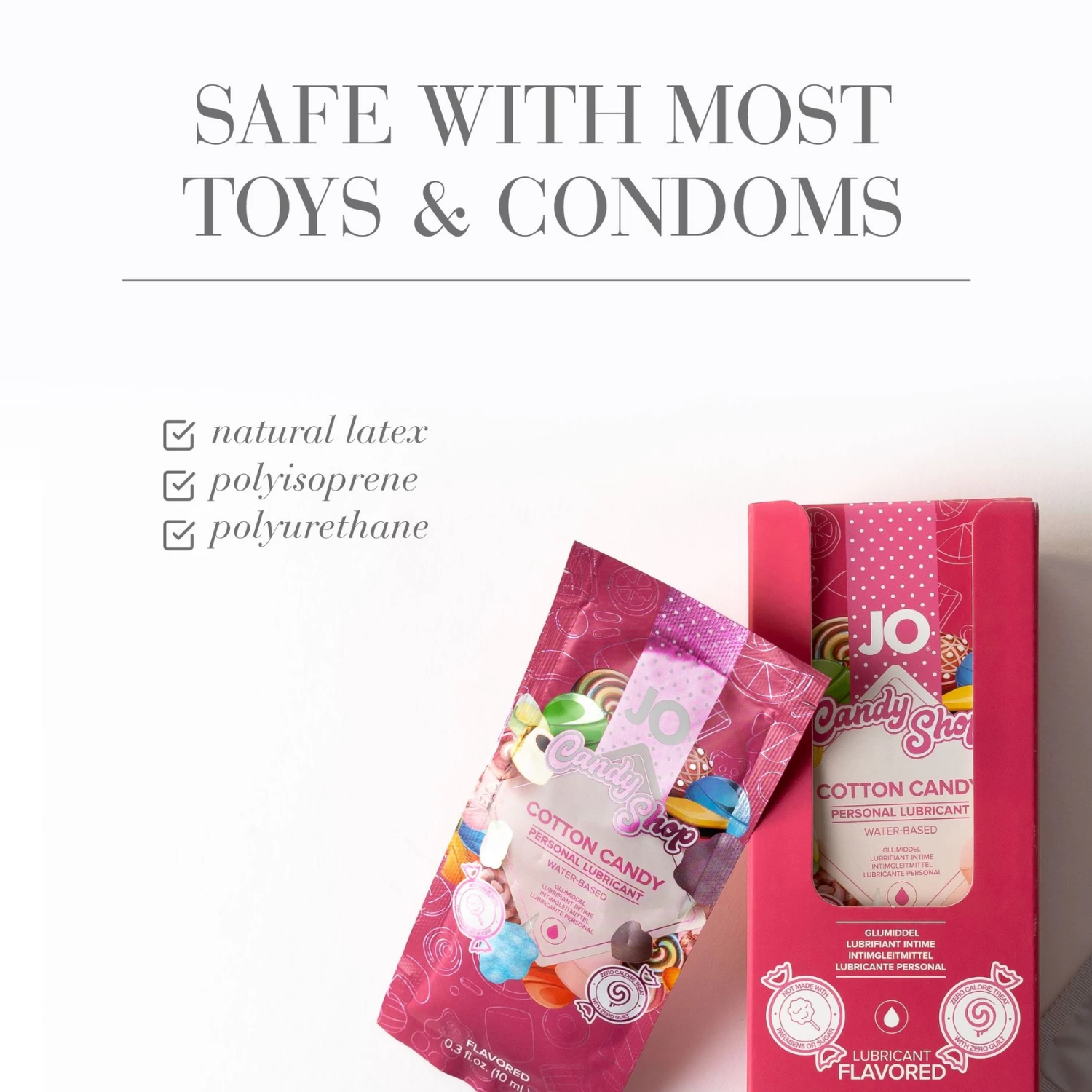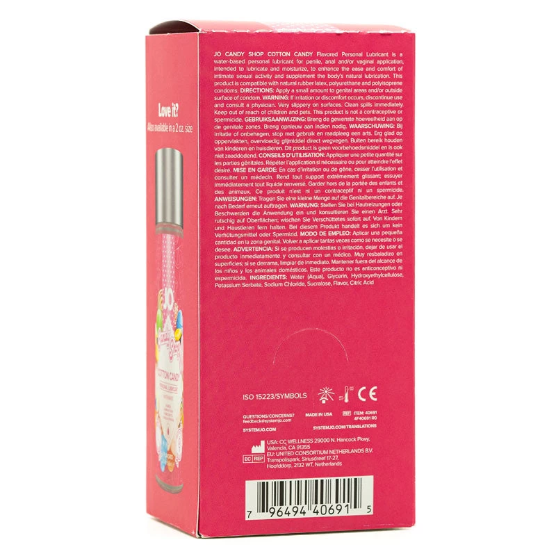 System JO CandyShop Cotton Candy is a personal water-based lubricant that will bring back memories of all these devilishly sweet desserts while creating a playful and intimate mood in your bedsheets.