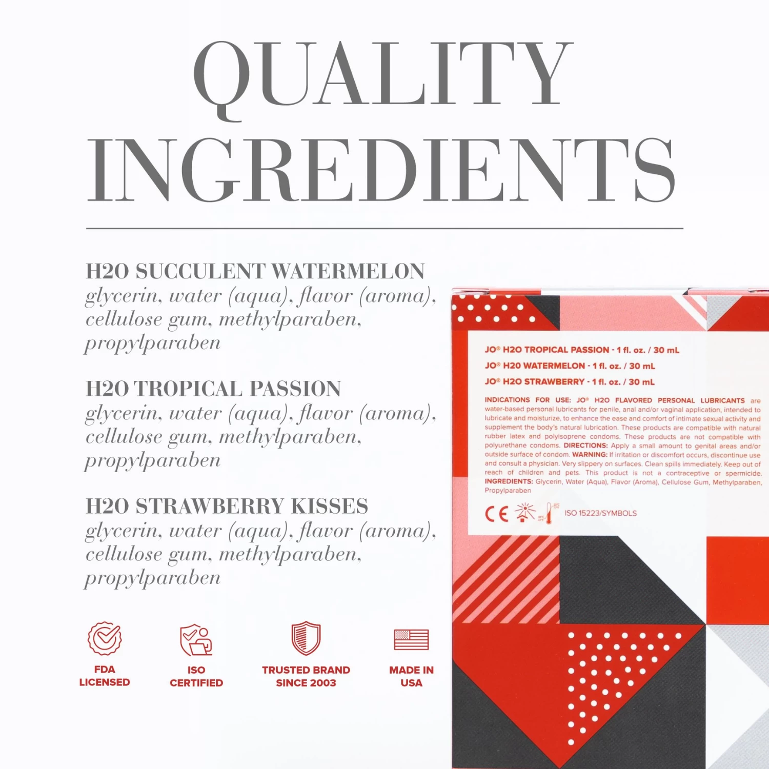 Indulge in the refreshing and juicy H2O Succulent Watermelon, a burst of summery delight that will awaken your senses. Experience the exotic allure of H2O Tropical Passion, transporting you to a tropical paradise with its irresistible blend of fruits. Delight in the luscious sweetness of H2O Strawberry Kisses, a classic flavor that adds a touch of romance to your intimate experiences.