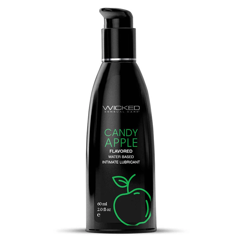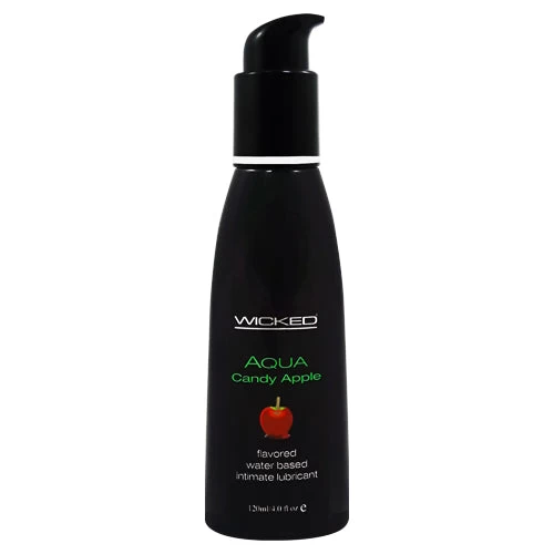 Wicked Aqua Candy Apple water-based lubricant adds fruity apple scent and flavor to your intimate moments for enhanced pleasure.